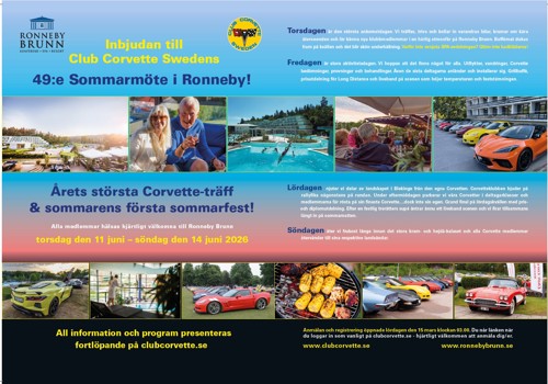 Du kan lese mer om arrangementet her https://clubcorvette.se/sommarmotet-2026-i-ronneby-brunn-11-14-juni/